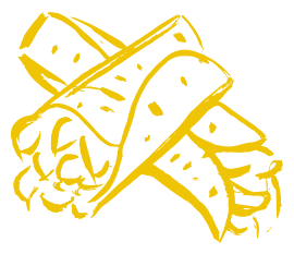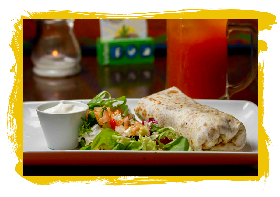 Burrito   11,5 Tortilla de trigo rellena de arroz, frijoles refritos, selección de carne y queso al horno.