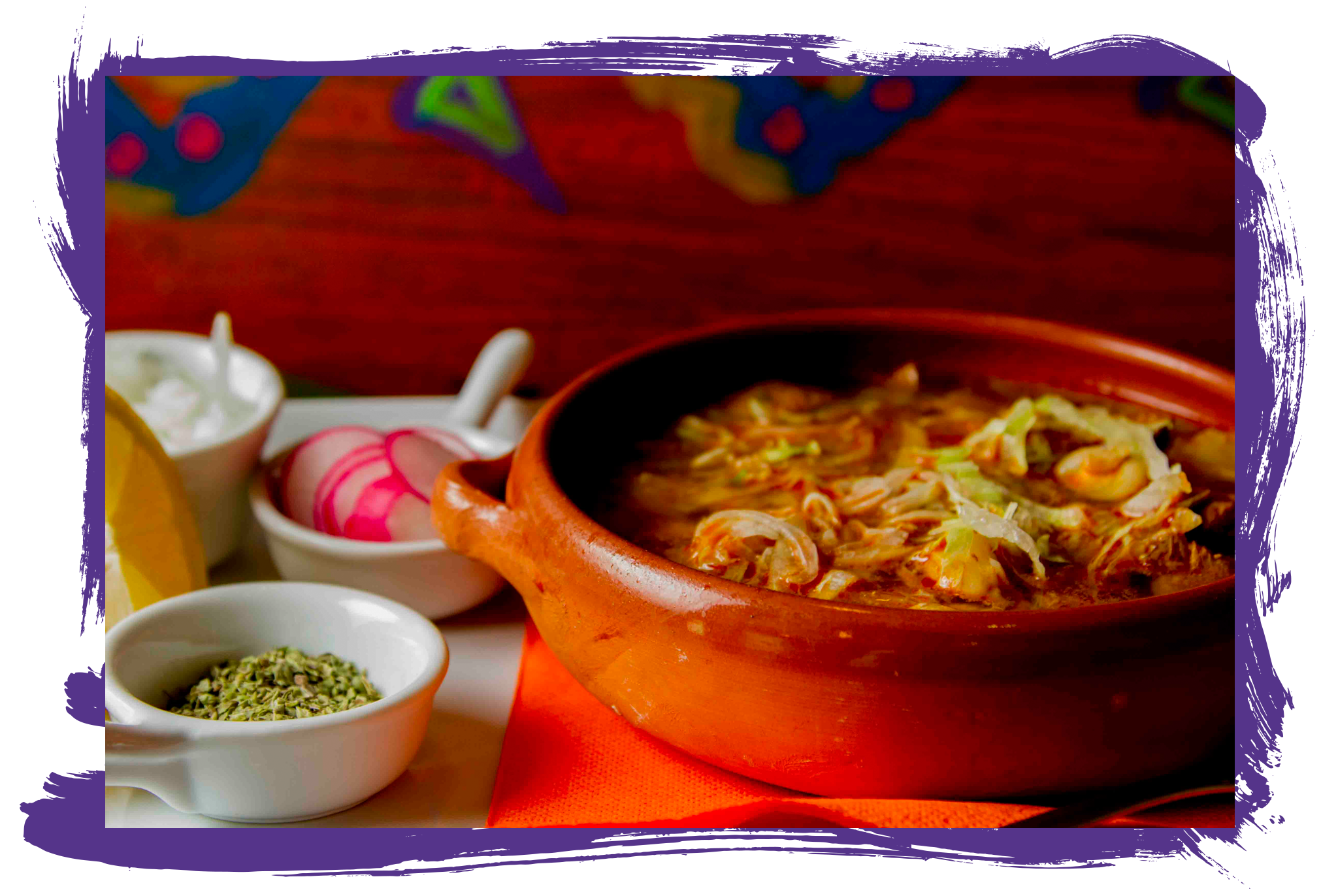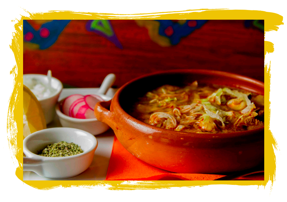 Pozole   11,8 Tradicional sopa mexicana con granos de maíz blanco y carne de cerdo. Acompañada con sus clásicas guarniciones picadas: rábano, cebolla, lechuga, limón y orégano.