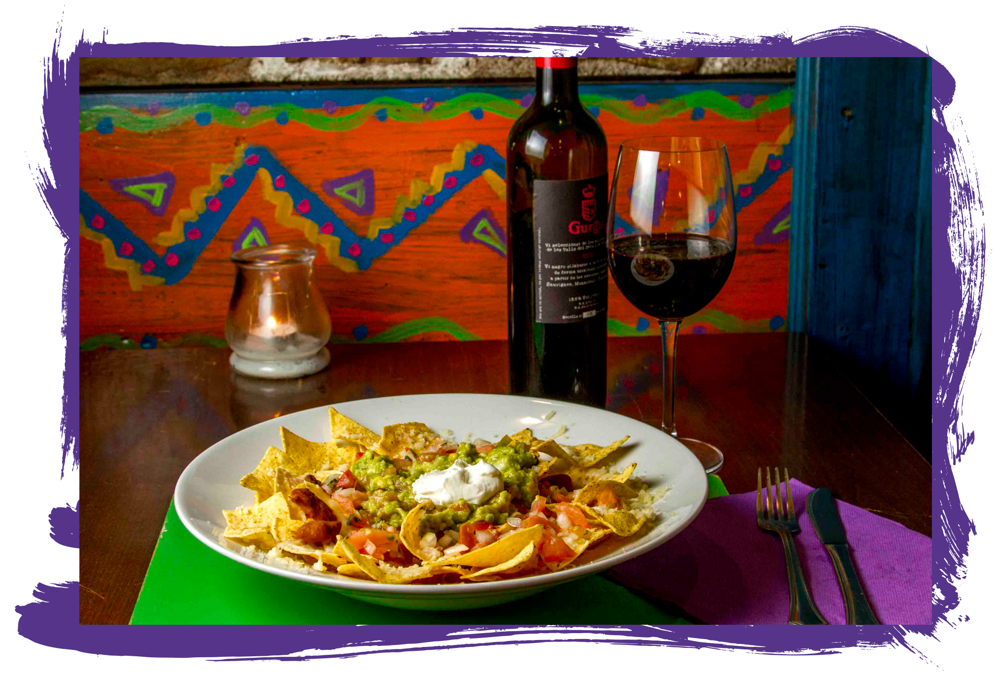 Nacho Macho   13,9 Son los nachos de la casa pero más grandes y sabrosos, que además incluyen guacamole y crema agria por encima.